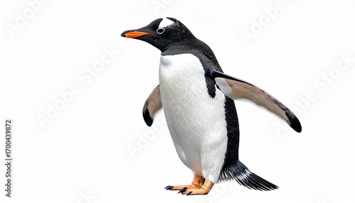 © ADNAN STOCKS, Fototapeta premium Penguin with black and white body orange beak short wings aquatic flightless bird isolated on white background