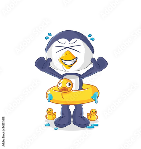 Obraz premium penguin with duck buoy cartoon. cartoon mascot vector