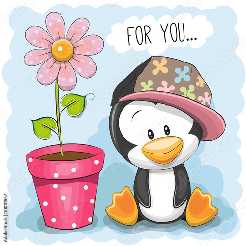Obraz premium Penguin with flower