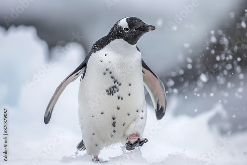 Fototapeta premium Penguins in the arctic walking around snow area.