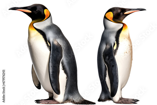 © Yaroslav, Obraz premium Penguins isolated on white background. Side view.