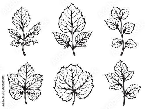 © VCT, Fototapeta premium Pennywort Leaf vector line art illustration