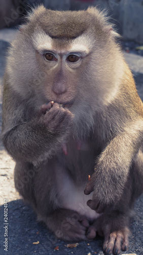 © Evgenii S, Fototapeta premium Pensive monkey eating peanuts