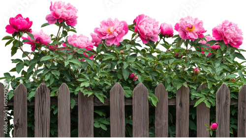 Fototapeta premium peonies bush on garden isolated on white background, seamless