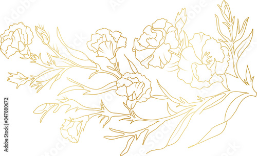 © abcvector, Fototapeta premium Peony flowers gold line art illustration