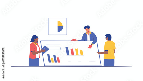 © SoftMark Studio, Obraz premium People are collaborating on a business presentation with charts and graphs on a whiteboard display