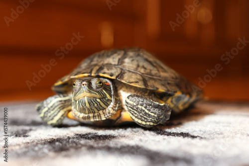 © Vasyl, Obraz premium People care for and play with a pet red-eared turtle.