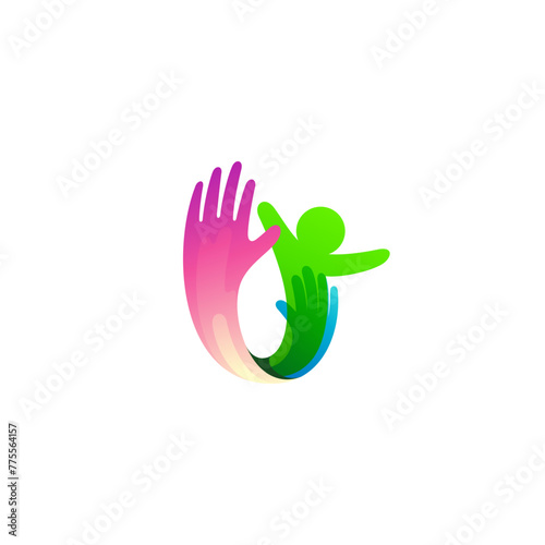 Fototapeta premium People care logo with hand design social, 3d colorful
