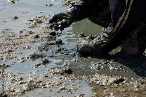 © 9kwan, Fototapeta premium People catching crabs during the period of low tide
