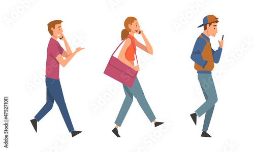 Fototapeta premium People Character Walking and Speaking by Smartphone or Chatting Vector Set