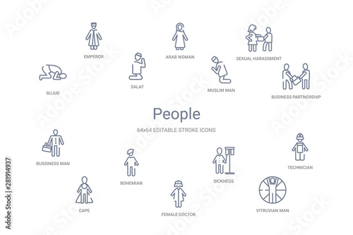 © zaurrahimov, Fototapeta premium people concept 14 outline icons