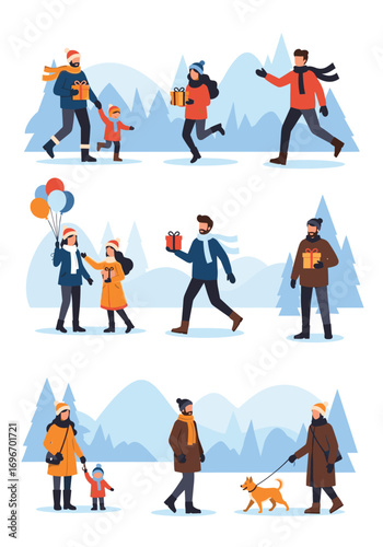 Naklejka premium People enjoying winter holiday season activities outdoors amidst snowfall