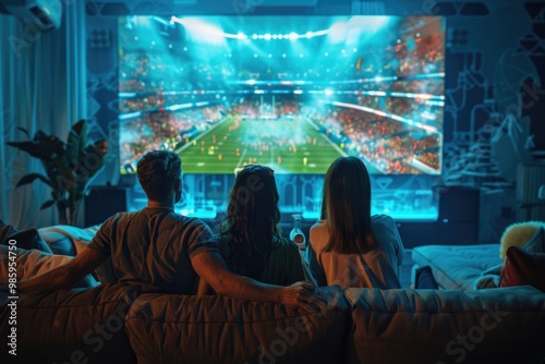 Obraz premium People gathered around TV watching a football match, possible family or...