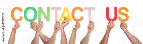 © Andrey Popov, Fototapeta premium People Hands Showing Text Contact Us