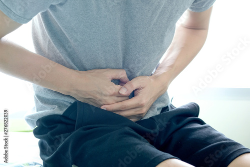 © Photo Sesaon, Fototapeta premium People have abdominal pain. Take a hand from the belly diarrhea.Health concept