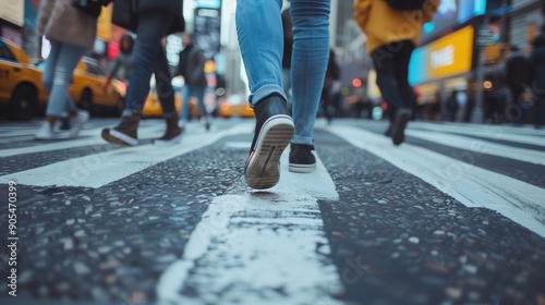 © vannet, Fototapeta premium People legs crossing the pedestrian crossing in New York city