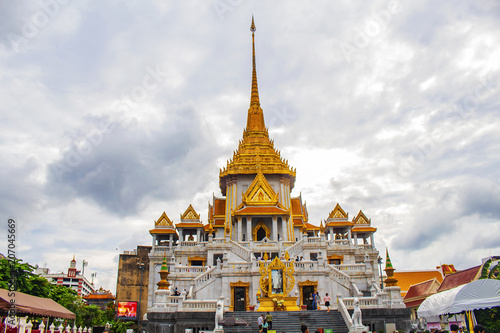 Fototapeta premium People make merit at Buddhist monks' day at Wat Traimit in Bangkok, Thailand.