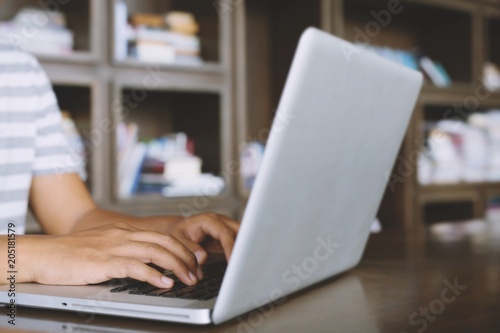 Fototapeta premium people man connect online business using computer laptop. or sitting work at on the desk in the library University. concept Online education in the digital age.