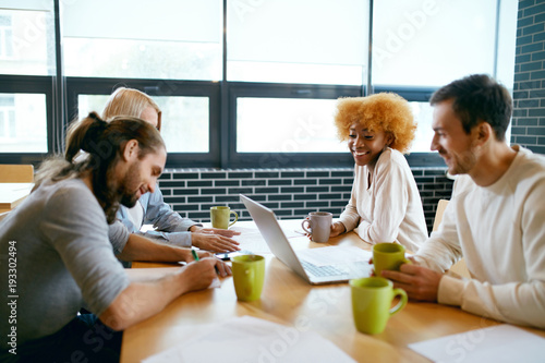 Fototapeta premium People Meeting In Cafe Working On Notebook