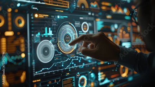 © Intelligent Horizons, Obraz premium People of financial experts gathered around a computer screen, analyzing a dashboard showing sales and operations data, big data analytics, Corporate strategy, operations, marketing in modern office.