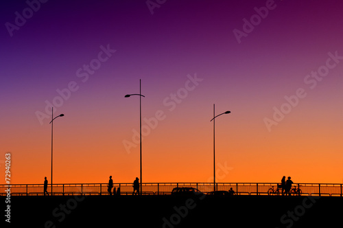 © Bits and Splits, Fototapeta premium People on the bridge in sunset