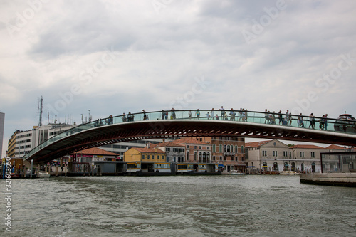 © i_valentin, Naklejka premium People on the glass Constitution Bridge over the Grand Canal in Venice