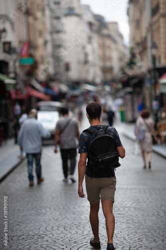 © Alexei, Fototapeta premium People on the street in the center of Paris. Blurred background.