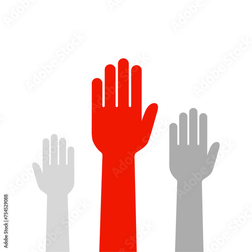 Fototapeta premium People raising hands vector. Leadership first volunteering concept
