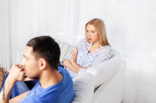Fototapeta premium people, relationship difficulties, conflict and family concept - unhappy couple having argument at home