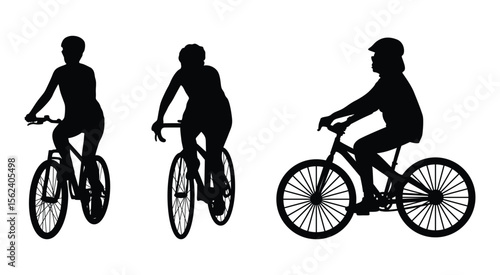 Fototapeta premium People riding bicycle silhouette set vector on white background, bicycle silhouette set vector, eps vector