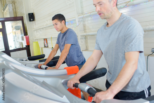 © auremar, Obraz premium people running in machine treadmill at fitness gym