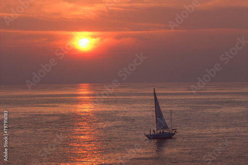 Fototapeta premium People sailing at sunset