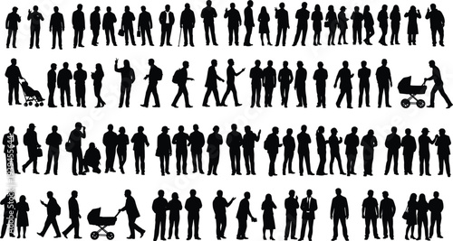 © MstRubi, Naklejka premium People silhouettes collection, walking, standing and business crowd set, vector illustration