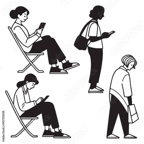 © Suma, Obraz premium People sitting in different ways vector illustration