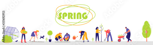 Naklejka premium People spend time in a garden.