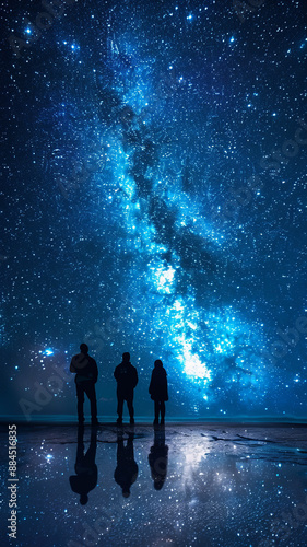 © Pawina, Obraz premium People stand in the night sky.generative ai