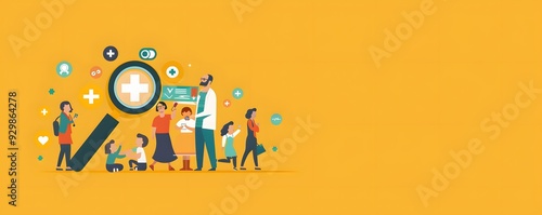 © rehan, Obraz premium People Standing Under a Magnifying Glass With a Medical Cross