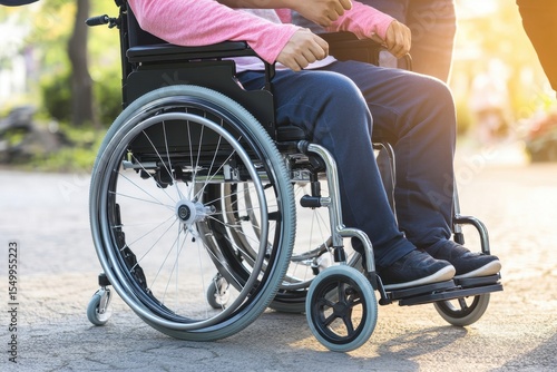 Obraz premium People support a person in a wheelchair..