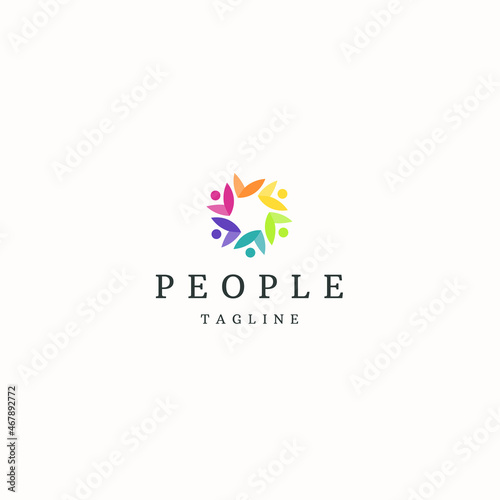 Obraz premium People unity logo icon design template flat vector