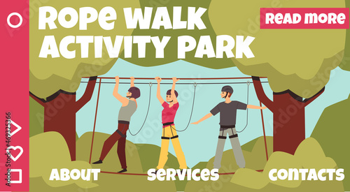 © sabelskaya, Obraz premium People walking in activity park on website interface, flat vector illustration.