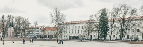 © Hilda Weges, Fototapeta premium People walking on Cathedral square in Vilnius Lithuania