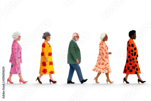 © sharafmaksumov, Fototapeta premium People Walking On White Background