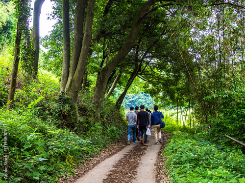 © Fotos 593, Obraz premium People walking to visit the rice fields plantation in Japan