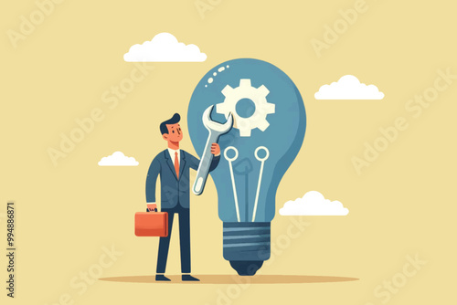 © Alya Hasna Fatimah, Obraz premium People who have ideas and try to perfect their ideas are symbolized by wrenches and burning lights