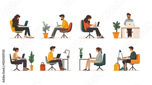 Naklejka premium People Working at Laptops Illustration