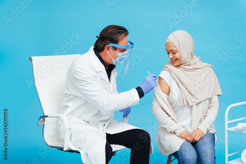 Obraz premium Peple gettig vaccine for covid-19 virus, vaccination against coronavirus