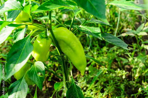 © ihorbondarenko, Fototapeta premium Pepper plant with fruits in garden
