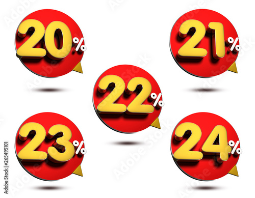 © Thitimon, Obraz premium 20-24 Percent 3D rendering on white background.(with Clipping Path).