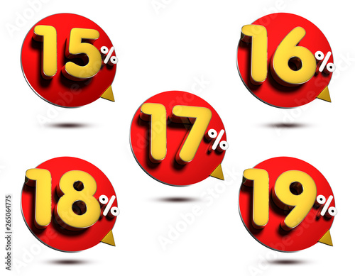Obraz premium 15-19 percent off 3D rendering on white background.(with Clipping Path).