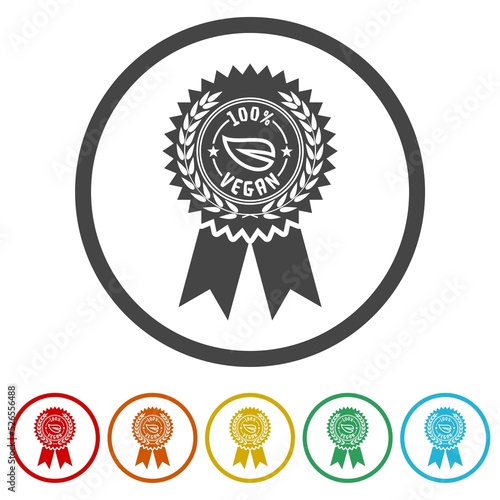 Fototapeta premium 100 percent vegan badge. Set icons in color circle buttons
